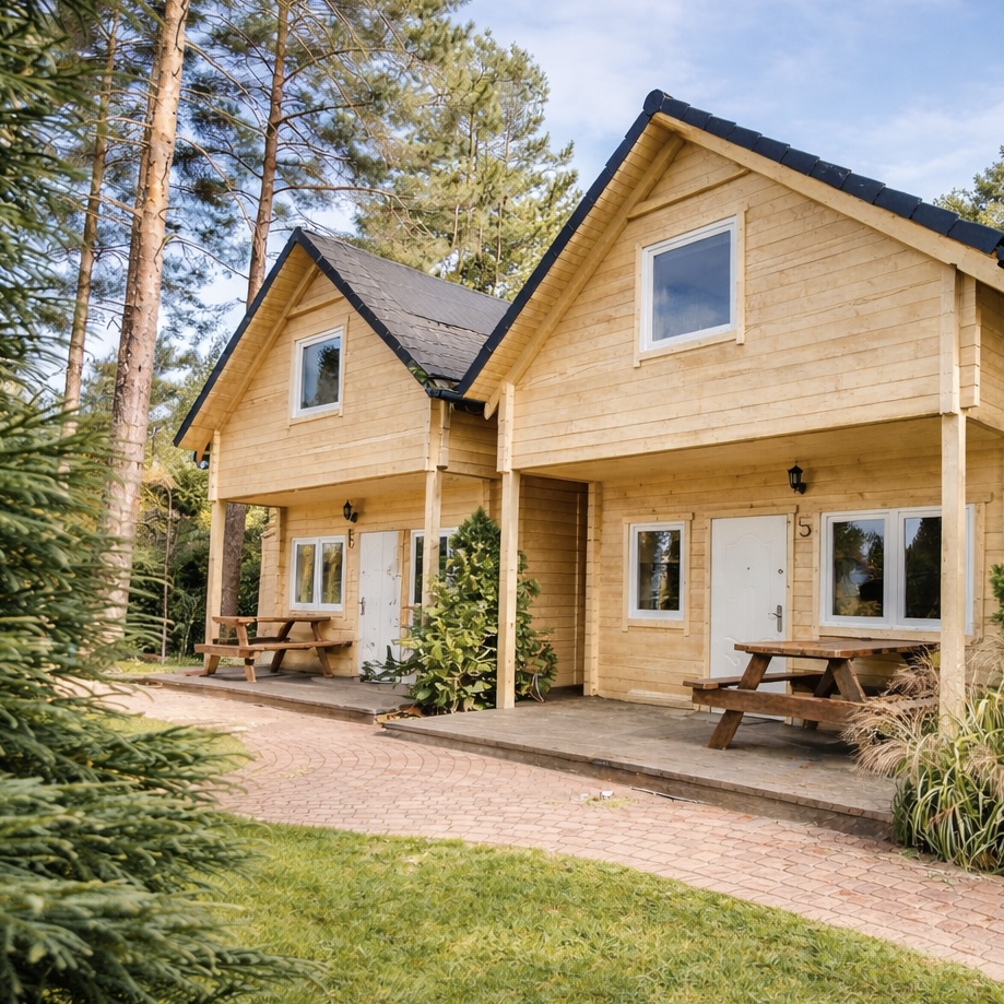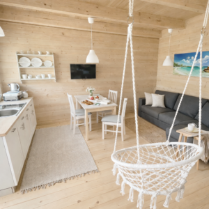 Wir verfügen über sechs komfortabel eingerichtete Ferienhäuser, die etwa 500 Meter vom Meer entfernt liegen. Da sie aus natürlichem Holz gefertigt sind, sorgen sie für eine wundervolle Atmosphäre. Holz sorgt für eine perfekte Temperatur, sowohl an heißen Tagen als auch an kühlen Nächten. Die aus Fichtenholz gebauten Cottages schaffen ein wunderbares Mikroklima, ideal zum Beruhigen der Nerven, Regenerieren der Lebenskräfte oder Ausruhen.