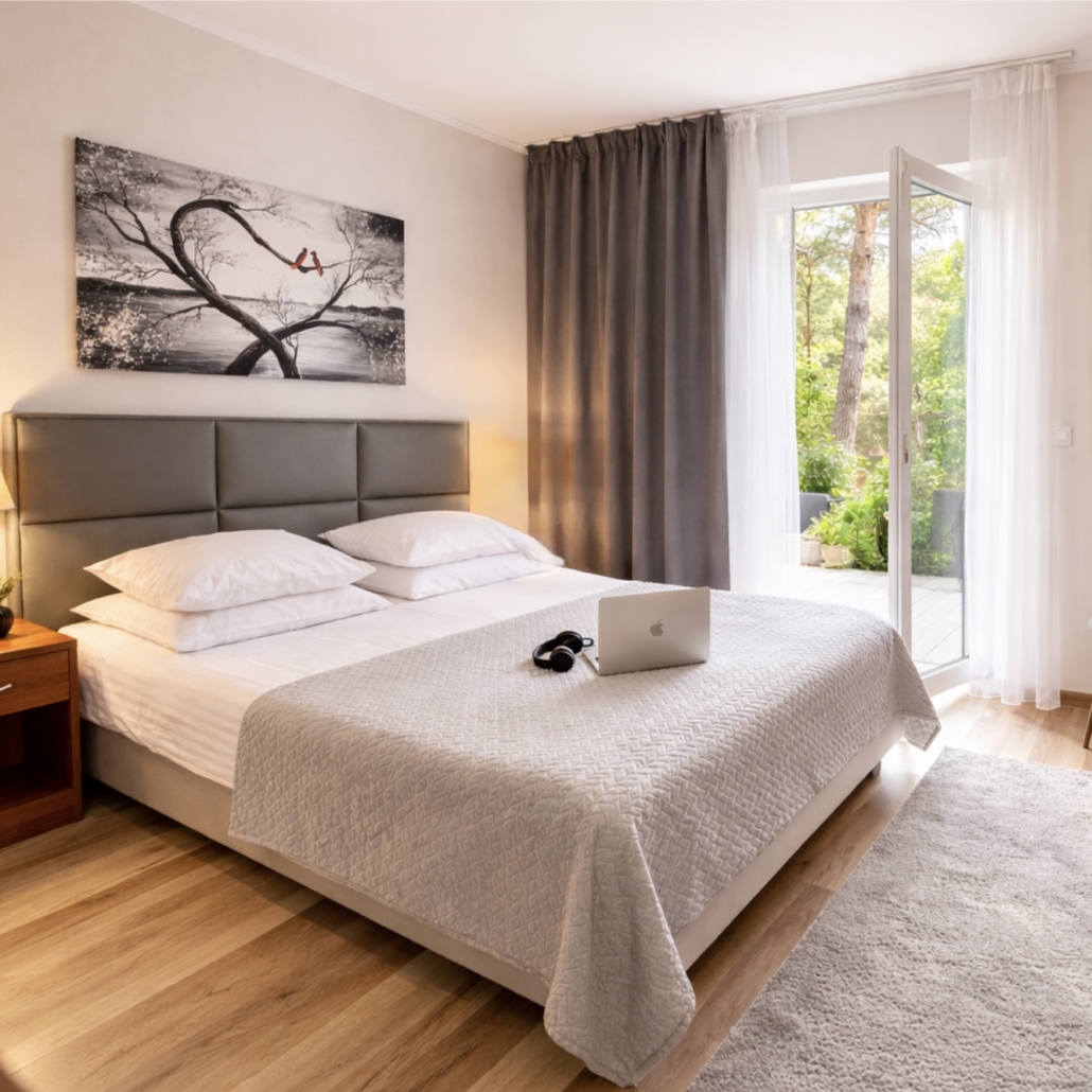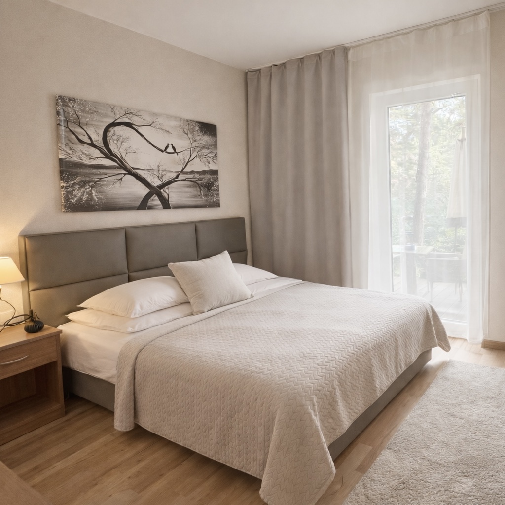 Our Morska Fala Guest House is located in the picturesque village of Pobierowo, immersed in pine forests. This makes it a place with a unique microclimate on a national scale. To immerse your feet in the golden sand, you only need to walk less than 200 m. The location is our great advantage, but the advantages of the facility do not end there. Each room has comfortable double beds, refrigerators and LCD TVs, as well as coffee and tea sets, thick, warm carpeting or floor panels. The rooms have a separate bathroom with a shower cabin.