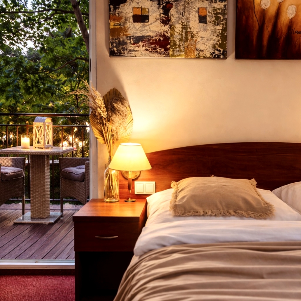 Most rooms have balconies or terraces equipped with garden furniture. Guests can use the kitchen and the intimate room, ideal for meetings or eating meals together. People who want to experience pleasant, sporting competition can play billiards. With the youngest guests in mind, we have prepared a high chair, as well as the possibility of renting a cot and additional bedding. On the premises there is a barbecue, and right next to it a playground for children.