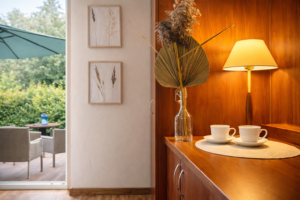 Atuty: Kominek, w którym można rozpalić ogień w chłodniejsze dni.