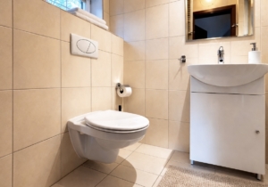 Łazienka: Prysznic, toaleta, umywalka.